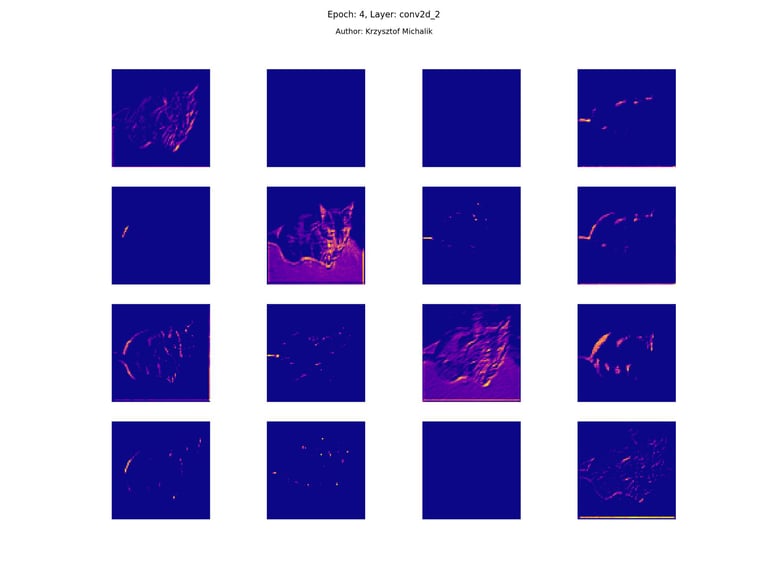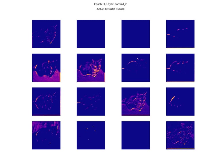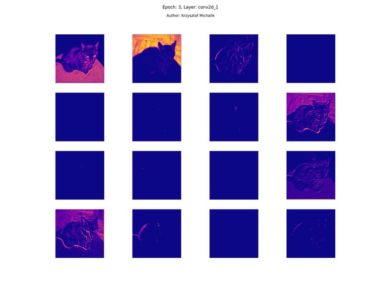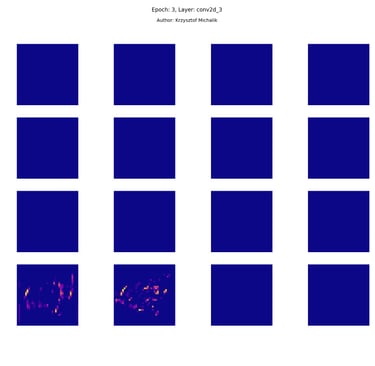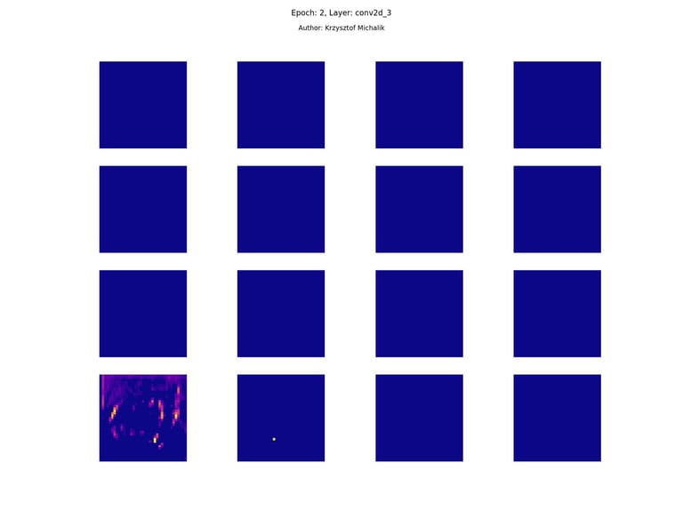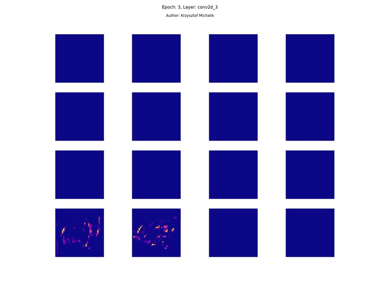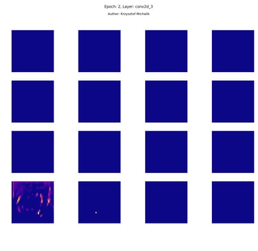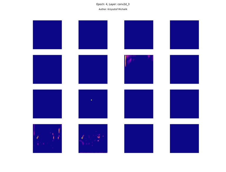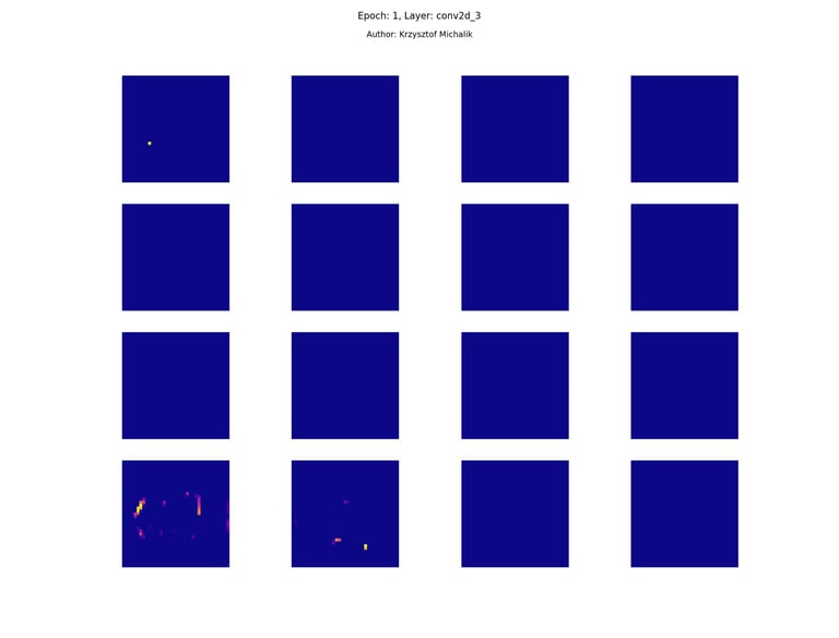 In addition to research on the extraction of logical and symbolic knowledge based on weights, one can have some insight into what is happening inside the processes of undoubtedly enormous computational complexity, related to training DNNs (Deep Neural Networks) to recognize objects for classification or, for example, object detection. The author wrote a program that can also be helpful for didactic, educational, demonstrative and even experimental purposes - to observe how dynamically the appearance of features changes, e.g. in feature maps during network training/training, in response to various changes in its hyperparameters, but also from the transition from one layer to another and as subsequent learning epochs pass.