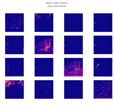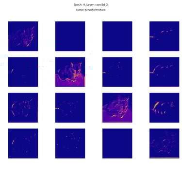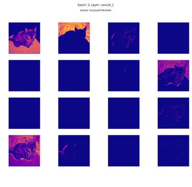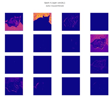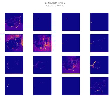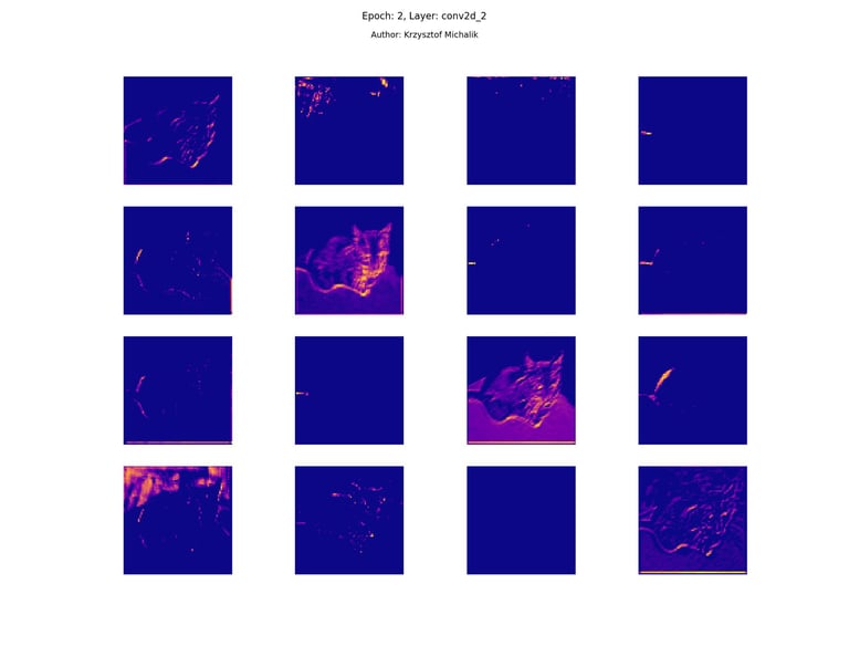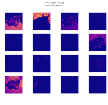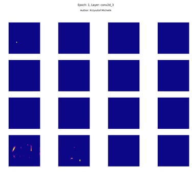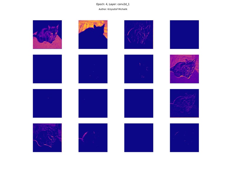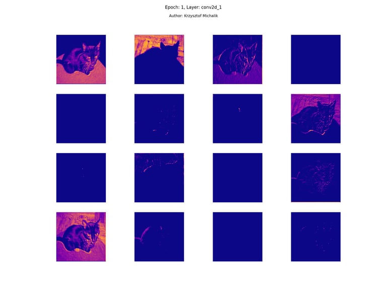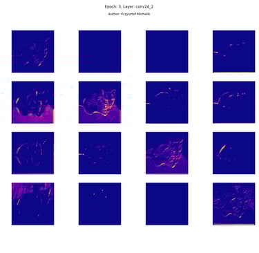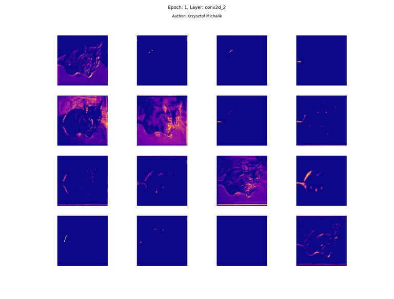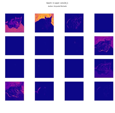 In addition to research on the extraction of logical and symbolic knowledge based on weights, one can have some insight into what is happening inside the processes of undoubtedly enormous computational complexity, related to training DNNs (Deep Neural Networks) to recognize objects for classification or, for example, object detection. The author wrote a program that can also be helpful for didactic, educational, demonstrative and even experimental purposes - to observe how dynamically the appearance of features changes, e.g. in feature maps during network training/training, in response to various changes in its hyperparameters, but also from the transition from one layer to another and as subsequent learning epochs pass.